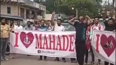 हिंदूवादी संगठनों का प्रदर्शन, लगे आई लव महादेव और आई लव यूपी पुलिस के नारे