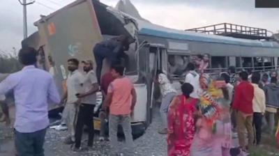 तेलंगाना में भीषण सड़क हादसा: गिट्टी से भरा ट्रक बस पर गिरा, 20 लोगों की मौत