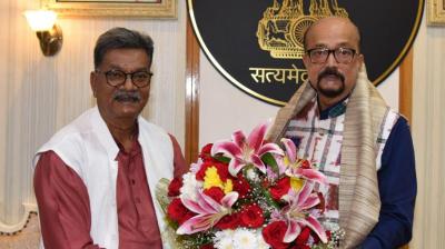 राज्यपाल रमेन डेका से छत्तीसगढ़ विधानसभा के नेता प्रतिपक्ष डॉ. महंत ने सौजन्य भेंट की