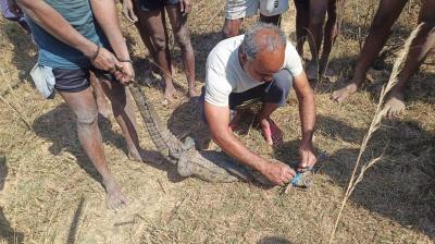 मगरमच्छ का सुरक्षित रेस्क्यू, जंगल सफारी में मिला नया आश्रय