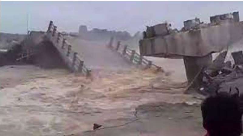 पुल के ऊपर सड़क बही