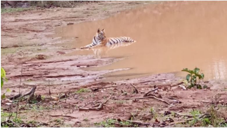 स्थानीय ग्रामीणों ने बाघिन के दर्शन का वीडियो बनाकर सोशल मीडिया में वायरल कर दिया, जो अब तेजी से सुर्खियां बटोर रहा है। हालांकि अब तक किसी इंसान को कोई नुकसान नहीं पहुंचा है, लेकिन बाघिन ने एक भैंस को शिकार बना लिया है और उसे मारकर नजदीकी तालाब में आराम करती देखी गई है।