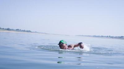 घुटने खराब लेकिन हौसला बुलंद: 63 साल की उम्र में नर्मदा में 25.65 किमी तैरकर बनाया रिकॉर्ड
