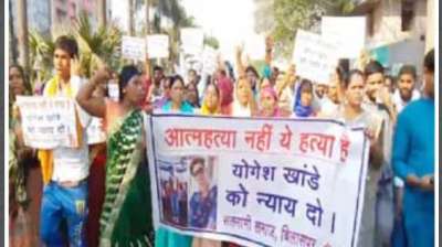 युवक की मौत पर सतनामी समाज का विरोध प्रदर्शन