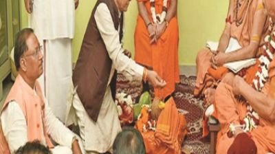 मुख्यमंत्री विष्णुदेव साय ने ज्योतिष पीठाधीश्वर और द्वारका शारदापीठाधीश्वर से लिया आशीर्वाद